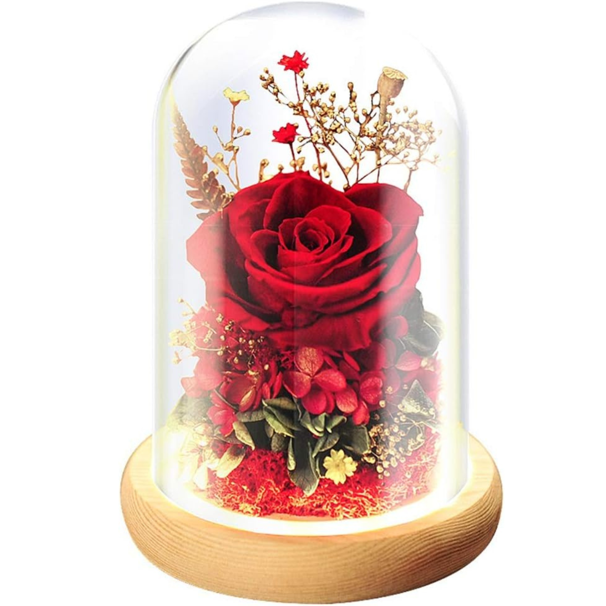 Rosa Romántica con Luces LED en Cúpula