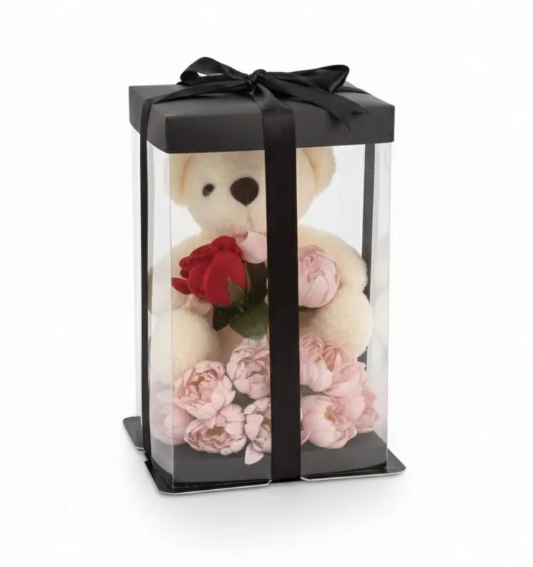 Regalo Oso de Peluche en Caja con Rosas