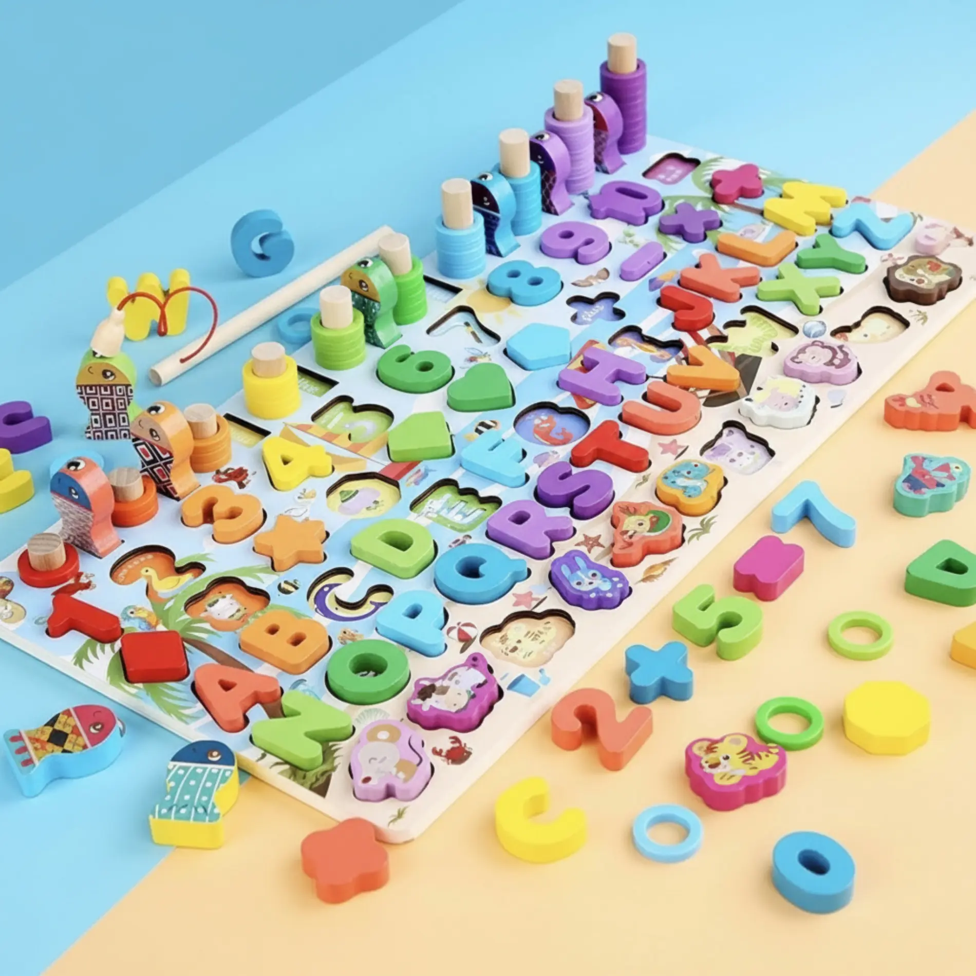 ✅ Colorido tablero de rompecabezas y pesca es un juguete delicado de educación infantil. Está hecho de madera de alta calidad, garantizando un uso resistente y duradero.