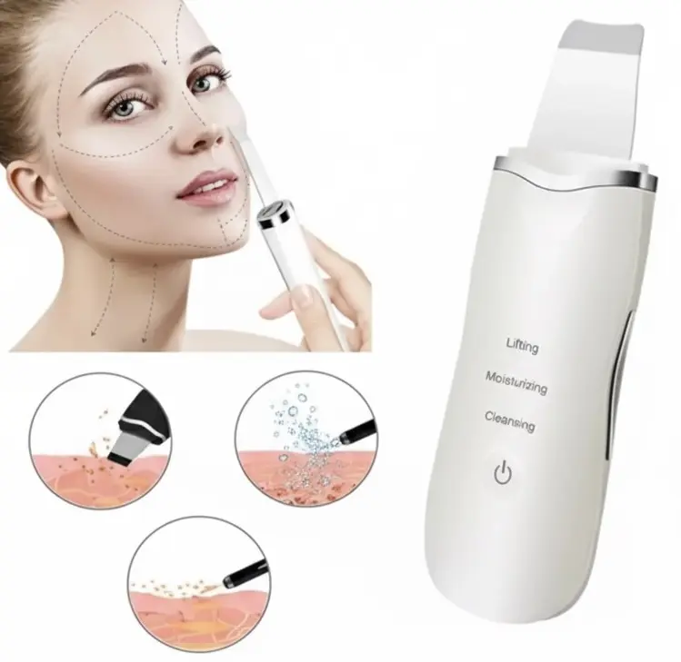 ✅ ¡Solución profesional ahora en tu casa! Este Limpiador Peeling Facial Ultrasónico utiliza una espátula de metal fino que vibra para ayudar a eliminar residuos de los poros sin dolor y sin irritación.