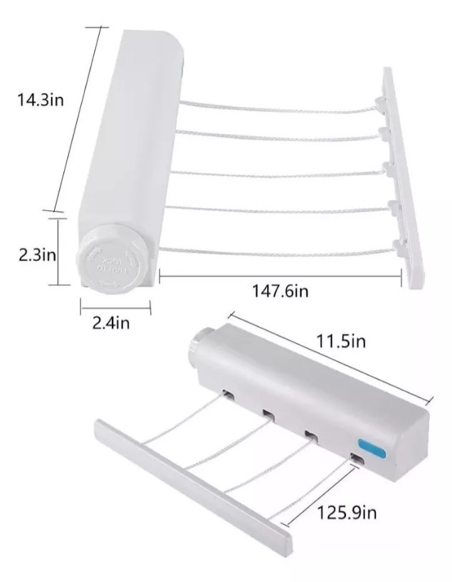 • ✅ Máximo Ahorro de Espacio: Su diseño compacto y retráctil permite que las cuerdas queden guardadas dentro de la carcasa de ABS cuando no se necesitan. ¡Dile adiós a los tendederos estorbosos!